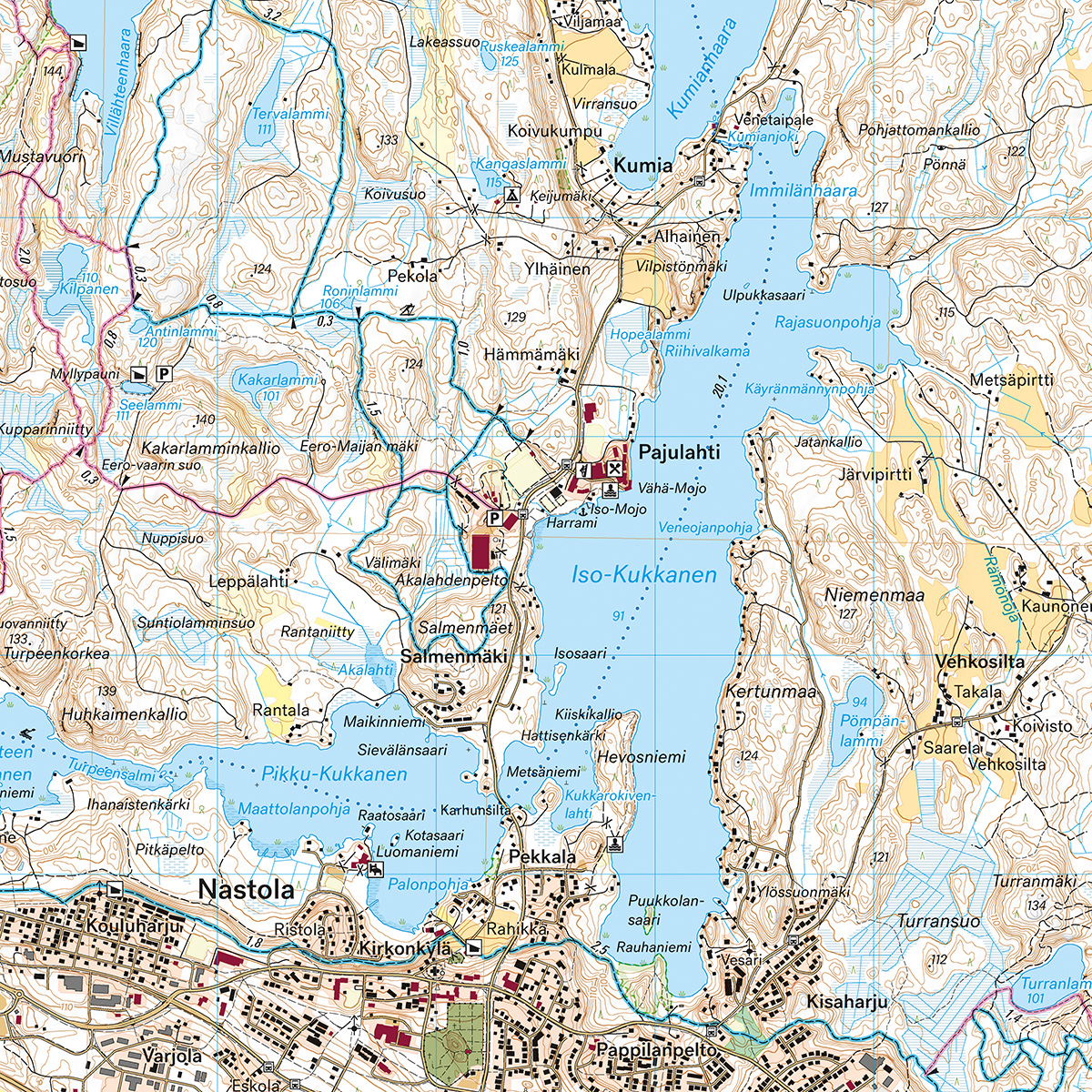 Karttamme painetaan mainiolle Tyvek®-materiaalille, joka on vedenkestävää ja repeämätöntä. Sinun ei tarvitse suojata karttaasi sateelta eikä se repeydy käytössä. Valmistaja takaa materiaalin kestävän 20 000 taittokertaa. Nerokkaan lehtijaon ansiosta kaikki alueen tärkeimmät retkikohteet mahtuvat yhdelle kartalle.