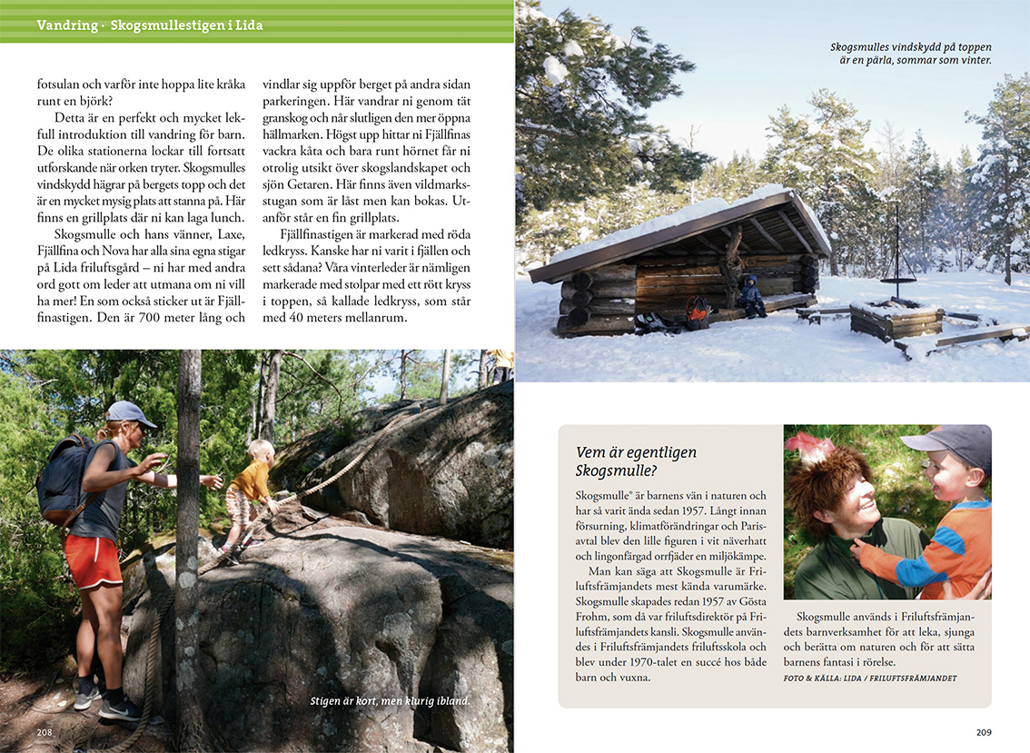 Den här är en guide till familjevänligt friluftsliv runt omkring Stockholm. Du får förslag på lagom långa vandringar, med eller utan barnvagn, en guide till friluftsgårdarna runt stan, tips på spännande utsiktsberg, natursköna badplatser, var det brukar plogas skridskobanor och var du kan hyra kanoter.