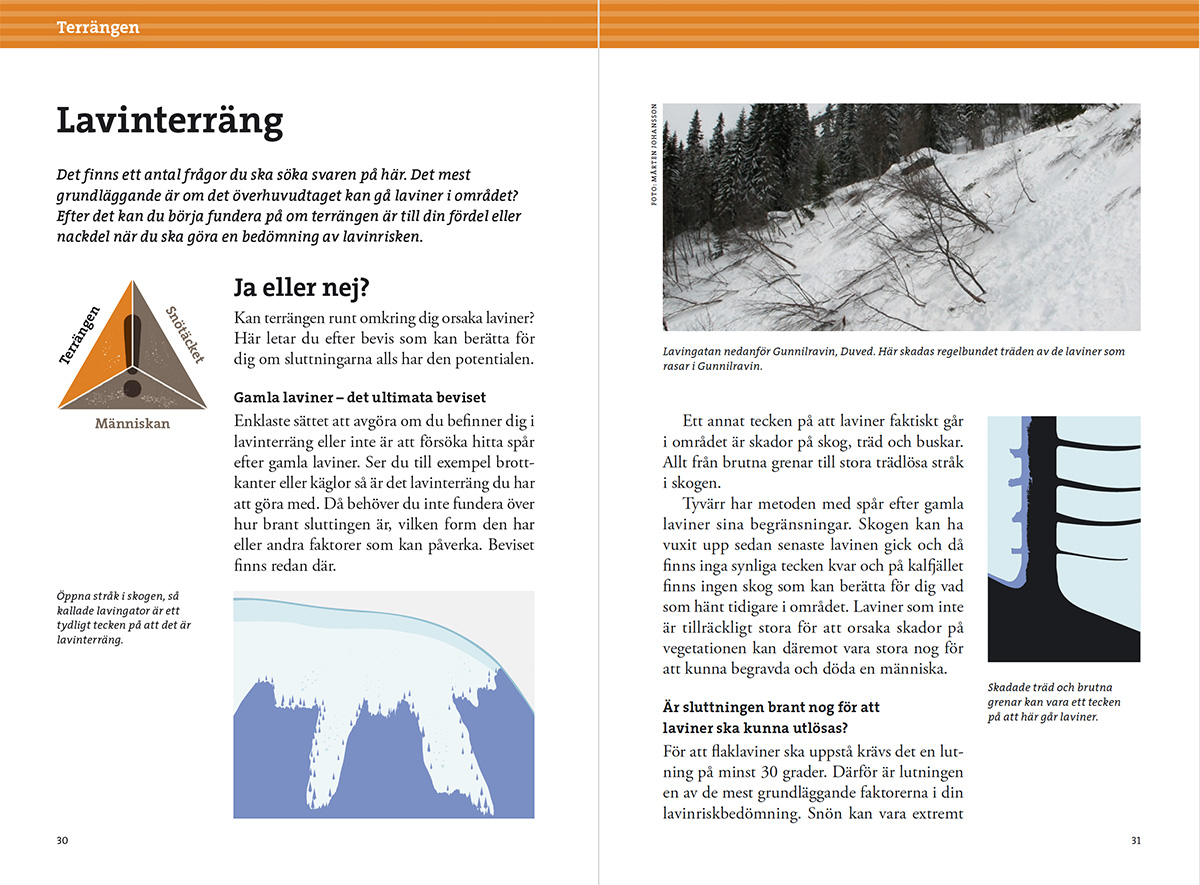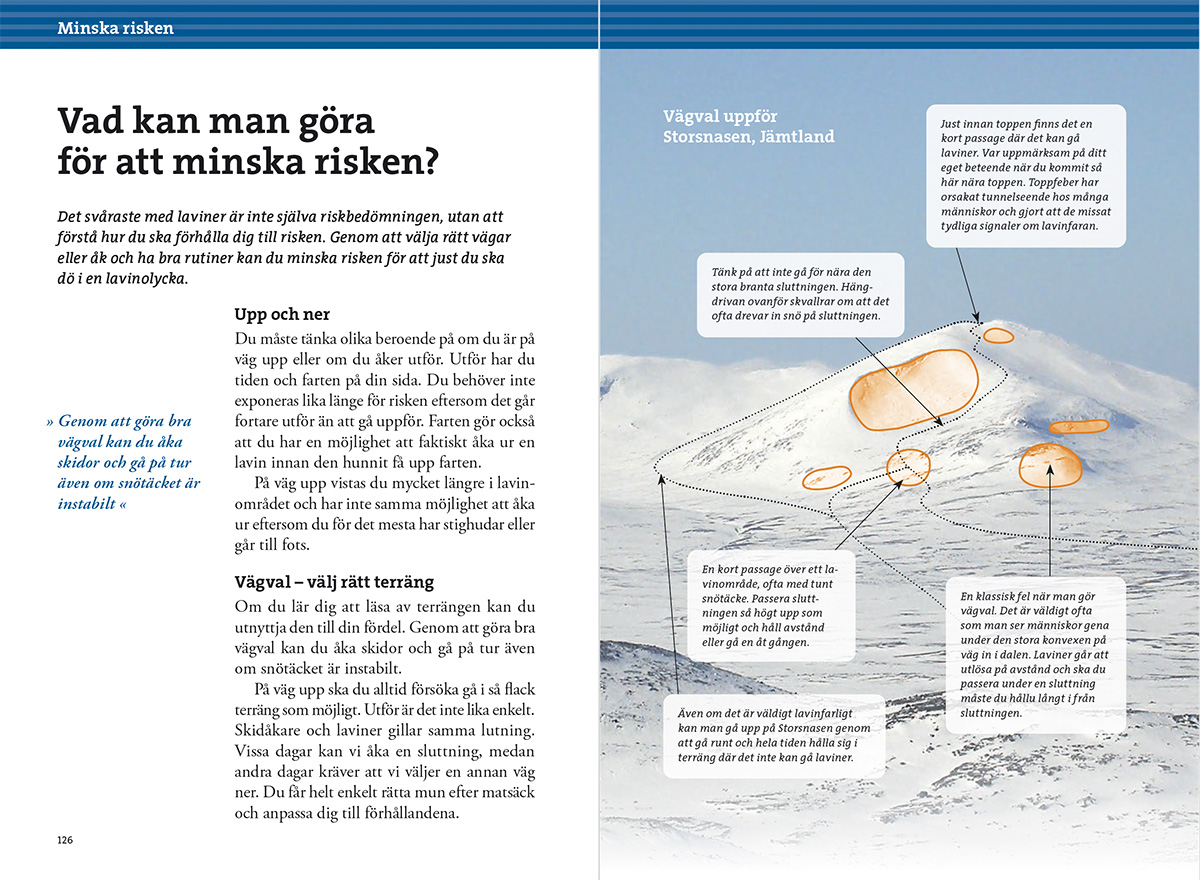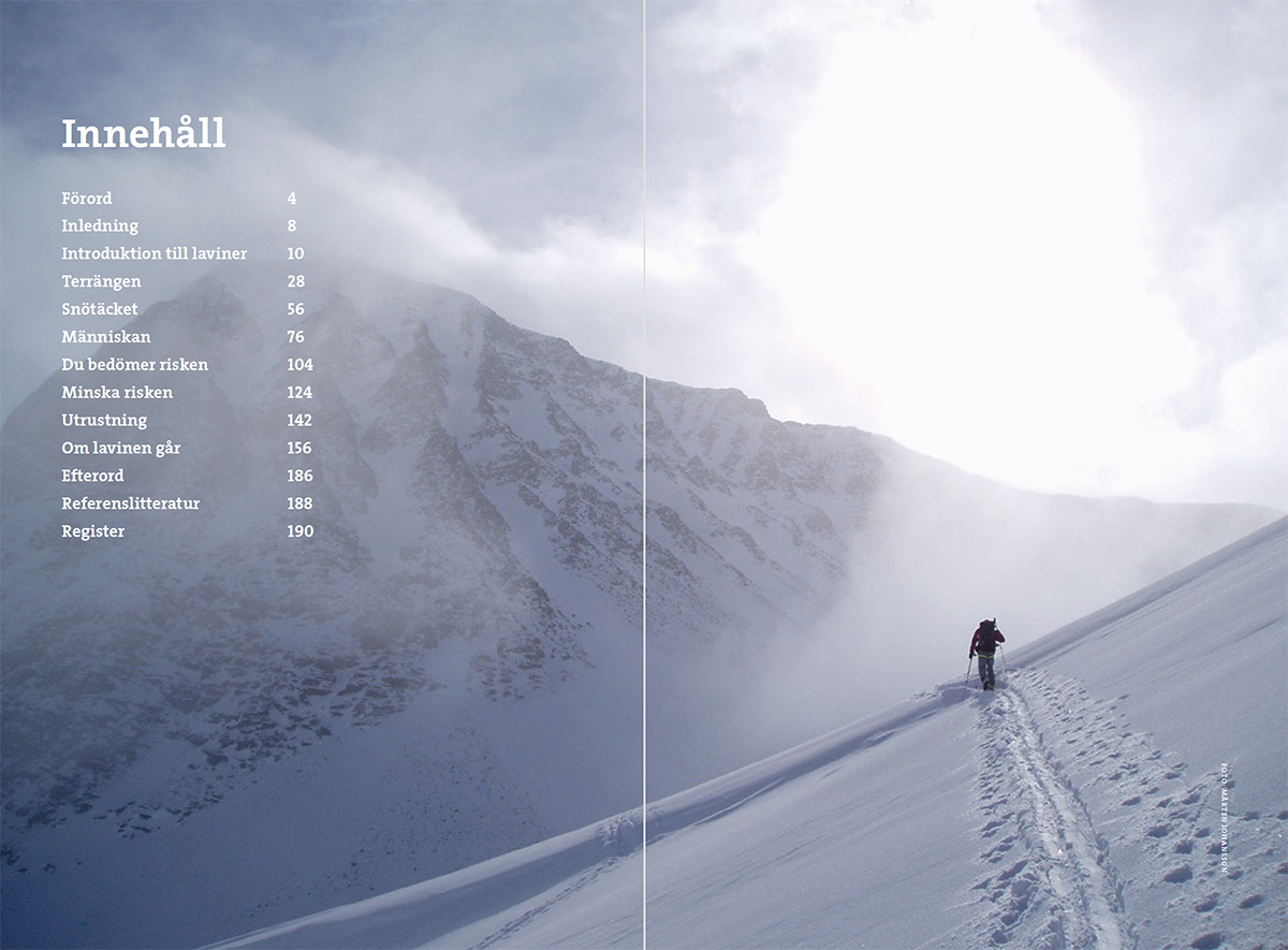 Steg för steg får du lära dig lavinriskbedömning, kamraträddning och hur du minskar riskerna uppför och utför. Ett helt kapitel ägnas åt riskbeteenden hos oss skidåkare, något som de senaste åren rönt ett allt större intresse bland lavinforskarna världen över.
