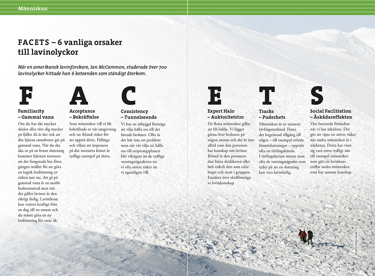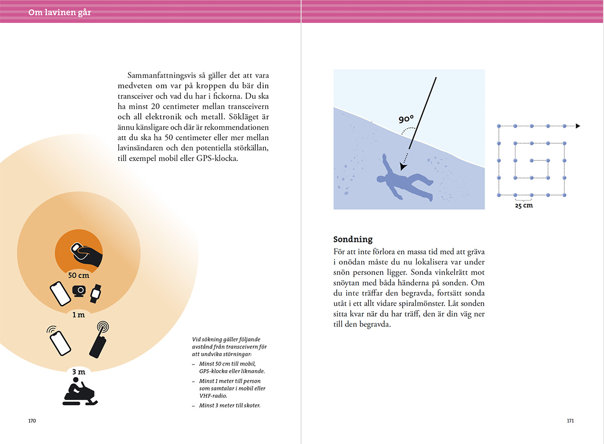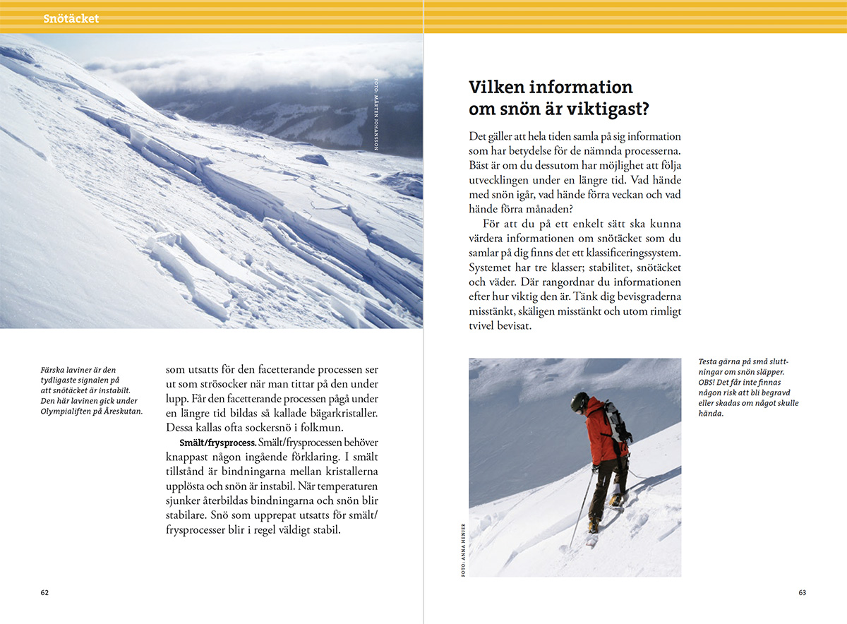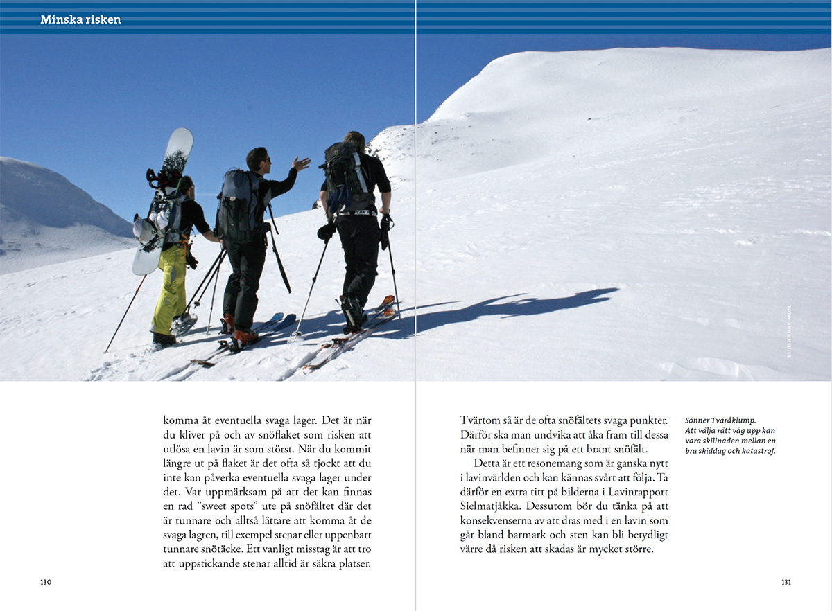 Steg för steg får du lära dig lavinriskbedömning, kamraträddning och hur du minskar riskerna uppför och utför. Ett helt kapitel ägnas åt riskbeteenden hos oss skidåkare, något som de senaste åren rönt ett allt större intresse bland lavinforskarna världen över.
