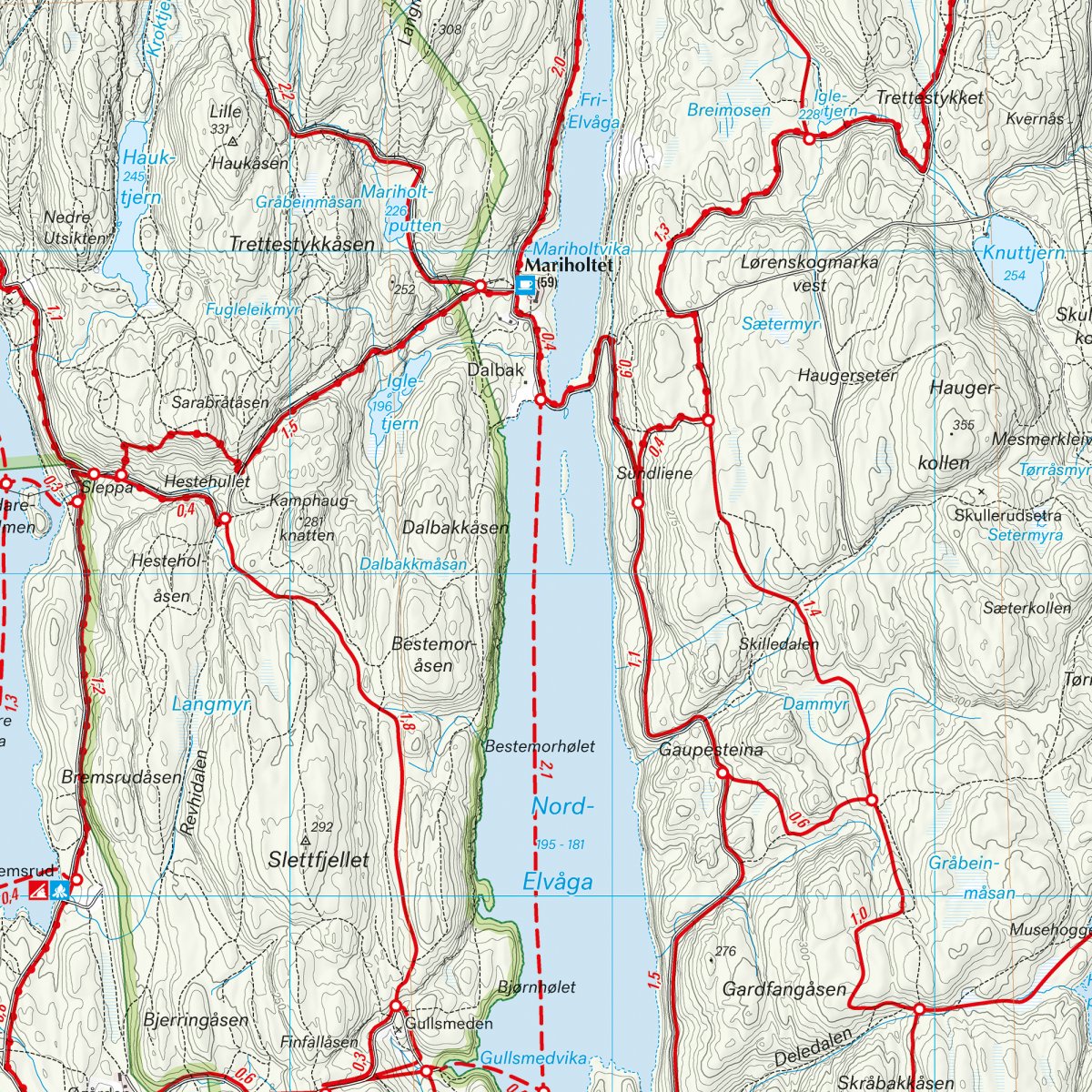 Jokaisessa kartassa näkyvät selkeästi latutyypit ja etäisyystiedot sekä hyödylliset lisätiedot, kuten pysäköintipaikat, mökit ja ruokailupaikat. Tieto on sovitettu helposti yhteen Skiforeningenin verkkosivuston reaaliaikaisten päivitysten kanssa. Kartat perustuvat laserkeilaukseen ilmakuvista, mikä takaa poikkeuksellisen yksityiskohtaisuuden ja tarkkuuden.